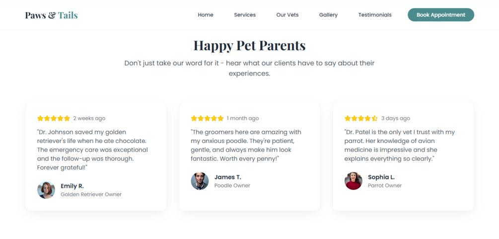 Modern HTML template for veterinary clinics and pet care services. Features responsive design, interactive elements, and complete business presentation sections.